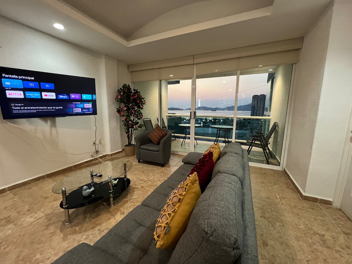 Torre Blanca公寓的67平方米公寓,可欣賞Puerto Marques Bay的最佳景觀。 景點:Playa Majahua (5 ')、La Capilla de la Paz,可欣賞阿卡普爾科全景(車程15分鐘)、購物中心: Sams、Wal Mart、LaComer、Toks等(車程10分鐘)。 您會喜歡我的空間,因為地理位置、氛圍、戶外區域和人們。 適合情侶、商務旅客和有小孩的家庭。 靠近Xtasea,滑索+大海。 全套白色床單。