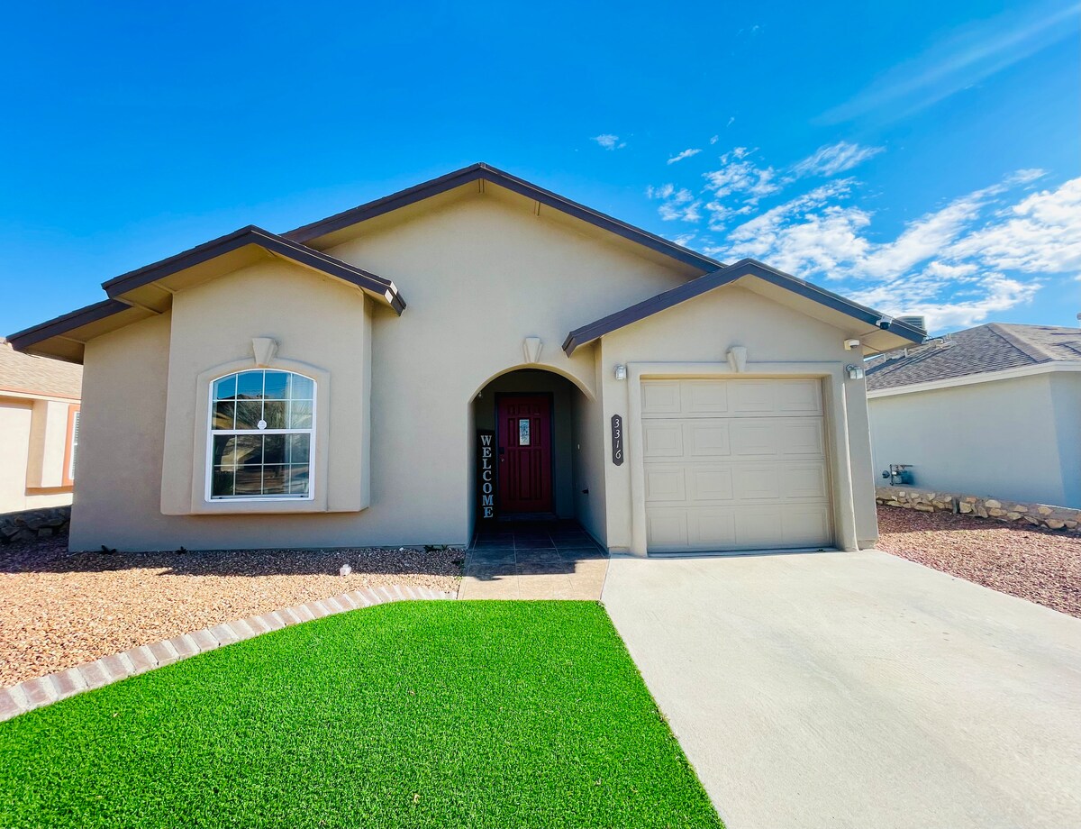 Welcome to our home-perfect for families, couples & dogs. Enjoy this spacious 3‑bedroom, 2‑bath home in a gated community w/security & many amenities. Our home is fun & comfy, w/high‑speed Wi‑Fi, a well‑equipped kitchen, grill, covered patio, & peaceful backyard. Walk/bike to the community pool/hot tub (open soon), gym, playground, tennis/basketball/volleyball courts. GREAT location- near 375 Loop, Ft. Bliss, Airport, hospitals, restaurants, shopping & NPs. Everything you need is right here!!