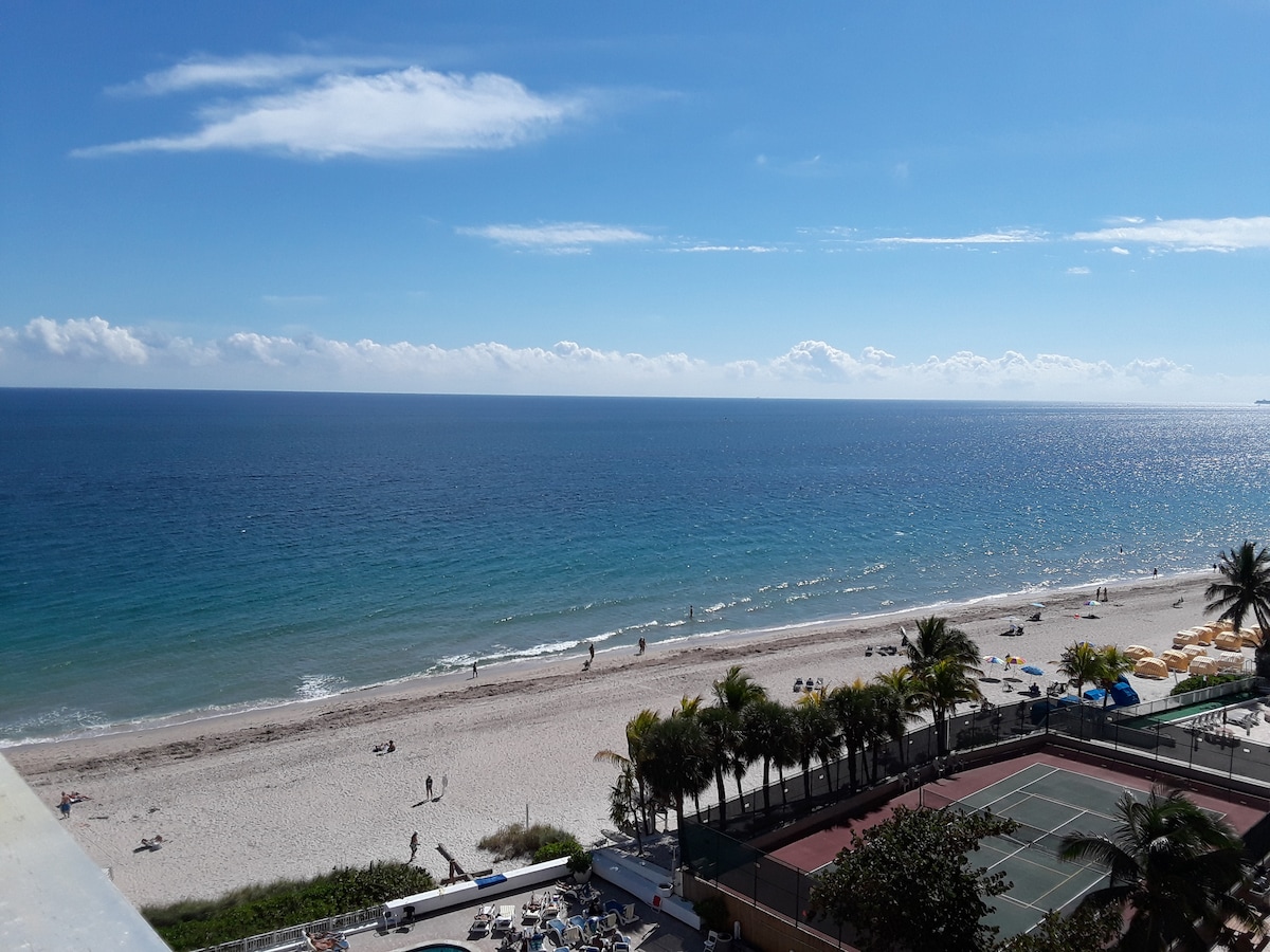 可愛的海灘單間公寓,裝潢精美,非常適合單身/夫婦。它有一部分海景。沒有陽臺。就在海灘上!它位於@海灘度假村@ Ft Lauderdale海灘/Lauderdale by the Sea,除了美麗的沙灘外,還有泳池、tiki酒吧、餐廳、咖啡店、髮廊、隔壁的水上運動租賃和商店,步行即可抵達超市。提供所有飯店設備。度假村提供每天18美元的停車位,房客必須年滿23歲才能租用。