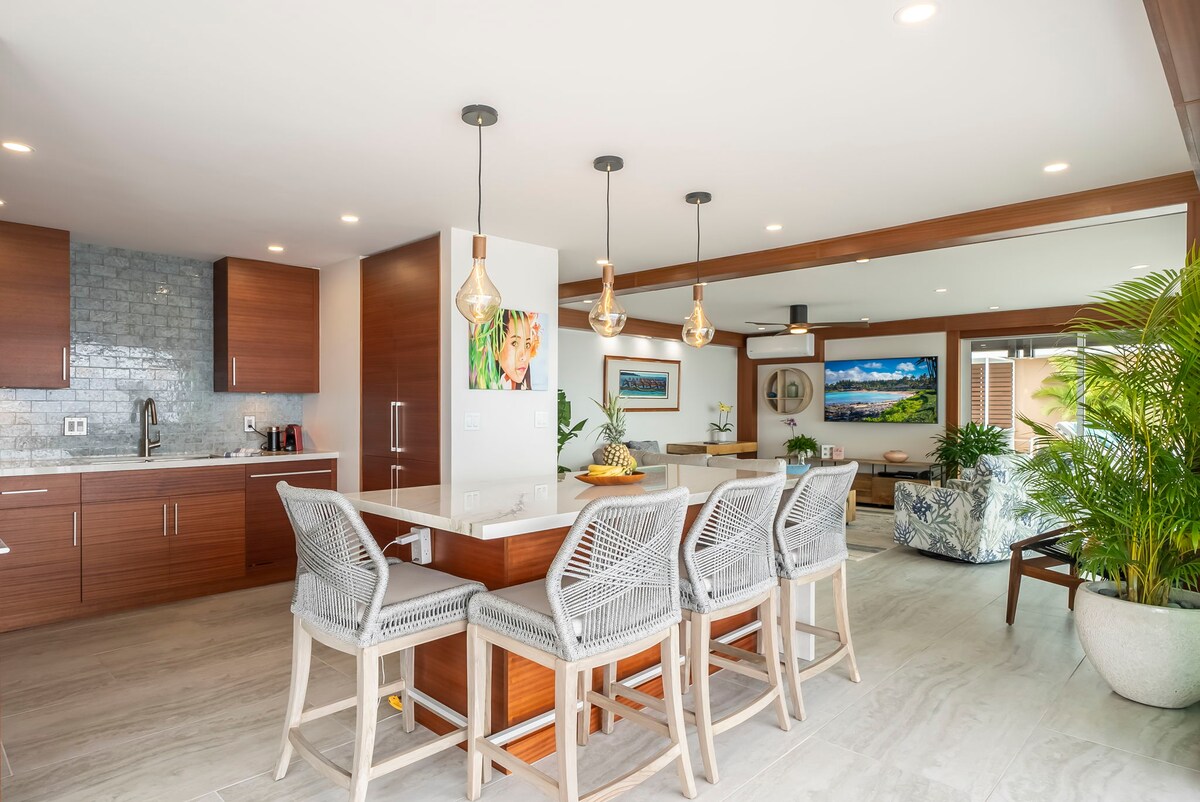 🌺 歡迎來到Puamana的Aloha小屋! 步行即可到達海洋,茂宜島唯一的海景泳池,與太平洋和海豚泳池相連,這間全面改造的2BR/2BA度假屋融合了海岸魅力和現代舒適。 享受寬敞的柚木家具陽台、室外淋浴、中央冷氣、大理石+芒果木廚房、羽毛梳化、酒冰箱、電影閣樓和海灘裝備。 Puamana 30英畝海濱社區的寧靜時尚天堂。🌴