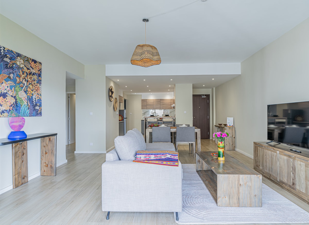 Welcome to a haven of tranquillity and comfort in our newly built apartment, conveniently located in a quiet neighbourhood with a commercial centre a few minutes from the apartment. It has a great view of the city of Nairobi and is surrounded by serenity from its surroundings creating a perfect place to relax.