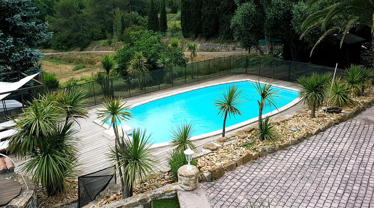 距離班多爾( Bandol )和大海10公裏。 一樓的兩間房間位於別墅露臺下方,面積為6,100平方公尺,配有9x4公尺的遊泳池。客廳廚房配有140公分寬的沙發牀,適合2名成人或2名兒童入住。 一間配有160公分的1張牀和衣櫃的臥室。 配有廁所的浴室。 設備:冰箱、帶機頂盒的平面電視、電磁爐、烤箱。 洗碗機和洗衣機。 配備瓦斯的花園傢俱。WI-FI。