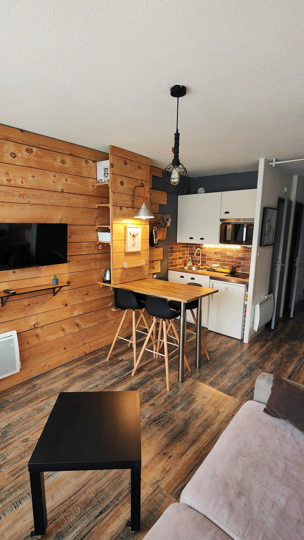 入住這間翻新、寧靜且位置方便的單間公寓,簡化您的生活。快來享受露臺,欣賞山景吧。 這間單間公寓位於一樓,非常明亮、舒適和實用,這間單間公寓由美麗的客廳、設備齊全的廚房、配有上下舖( 90 × 190 )的山區、帶廁所的漂亮浴室組成。 在客廳,沙發很容易變成一張160x200的標準雙人牀。