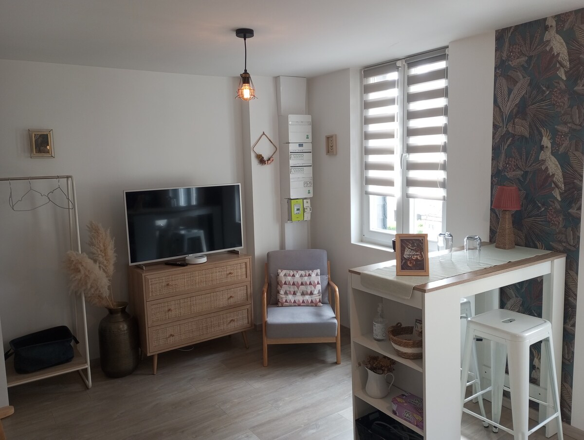這座迷人的小屋位於典型的諾曼底房產上,距離多維爾 (Deauville) 和花岸 (Côte Fleurie) 海灘 20 分鐘,距離蓬萊韋克 (Pont L'Evêque) 10 分鐘。 充滿魅力,坐落在美麗的環境中,許多河流和景觀花園將為您帶來平靜和放鬆 一樓:客廳、開放式廚房、壁爐、樓上:1 間臥室(1 張床 160 x 190 公分)、淋浴間與廁所。洗碗機、電視、電暖、私人花園休息室 網址: lesmaisonsdecorcheville