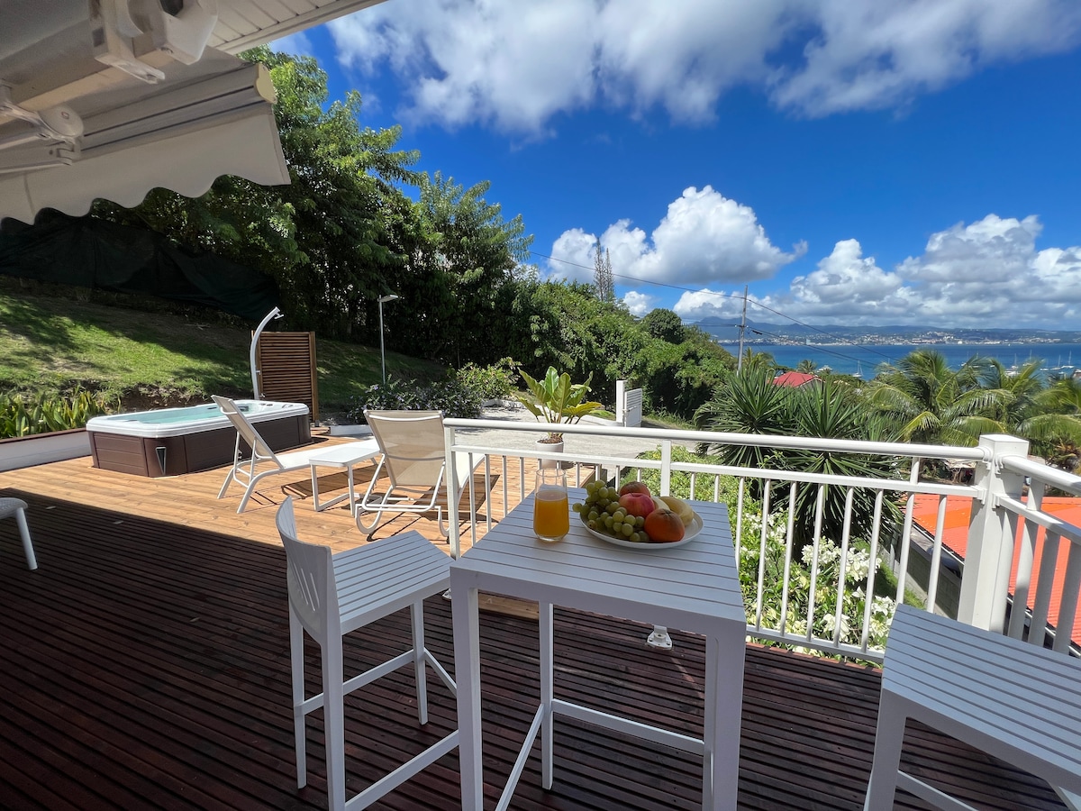 設備齊全的廚房區域、浴室、義大利淋浴間、配有160張牀的臥室和舒適的沙發牀。 私人露臺沉浸在茂密的植被、海景和壯麗的日落中。 明亮舒適,距離Carbet海灘5分鐘路程,靠近Raisiniers海灘,有火山沙灘Pelee Mountain。 功能性,禪意氛圍。 2020年,卡貝特市在加勒比地區日記中被命名為加勒比海的20個值得探索的地方。