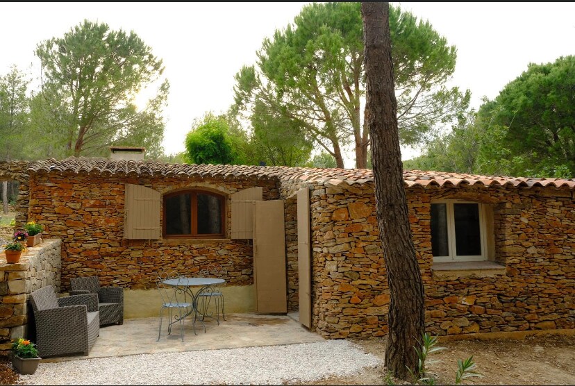 樹林後面的不尋常的房子。 在綠色的普羅旺斯,坐落在森林、橄欖樹、灌木叢和藤蔓之間。 冬季柴火、遊泳池、petanque球場、午睡、冥想、瑜伽或在森林中的寶塔下閱讀。 在鄉村,環境極佳。 舒適的空調小木屋,安靜,可充電和斷開連接。 停車位。供我們的動物朋友使用的圍欄。 參觀美麗景點的絕佳假期。