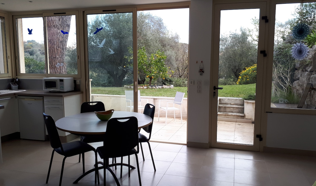 Petit STUDIO très bien équipée avec entrée et parking privé dans une grande Propriété avec piscine et jacuzzi chauffés du 10 avril au 30 octobre . La piscine extérieur et jacuzzi ainsi que le jardin sont partagés mais assez grand pour profiter chacun son espace de tranquillité . Je vis dans la bastide principale . Un Havre de Paix entouré d oliviers centenaires . A 35 minutes de l aéroport de Nice et divers villages provençaux et 14km de Cannes . Tele grand écran /abonnement Netflix