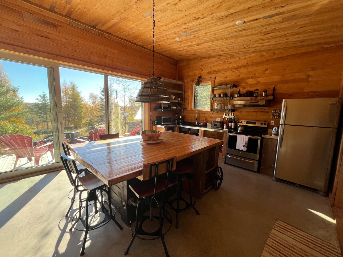 無拘無束地放鬆身心的完美之地! 16 英尺長的玻璃露臺門讓您隨時感覺置身戶外;即使下雨或下雪,也能享受舒適和溫暖。 夏季:適合在米斯塔西比河 (Mistassibi) 上玩皮划艇或獨木舟,或沿河徒步旅行的愛好者。 可前往小海灣游泳或欣賞急流。 冬季:享受雪鞋小徑。靠近雪地摩托車道的49平行線步道。