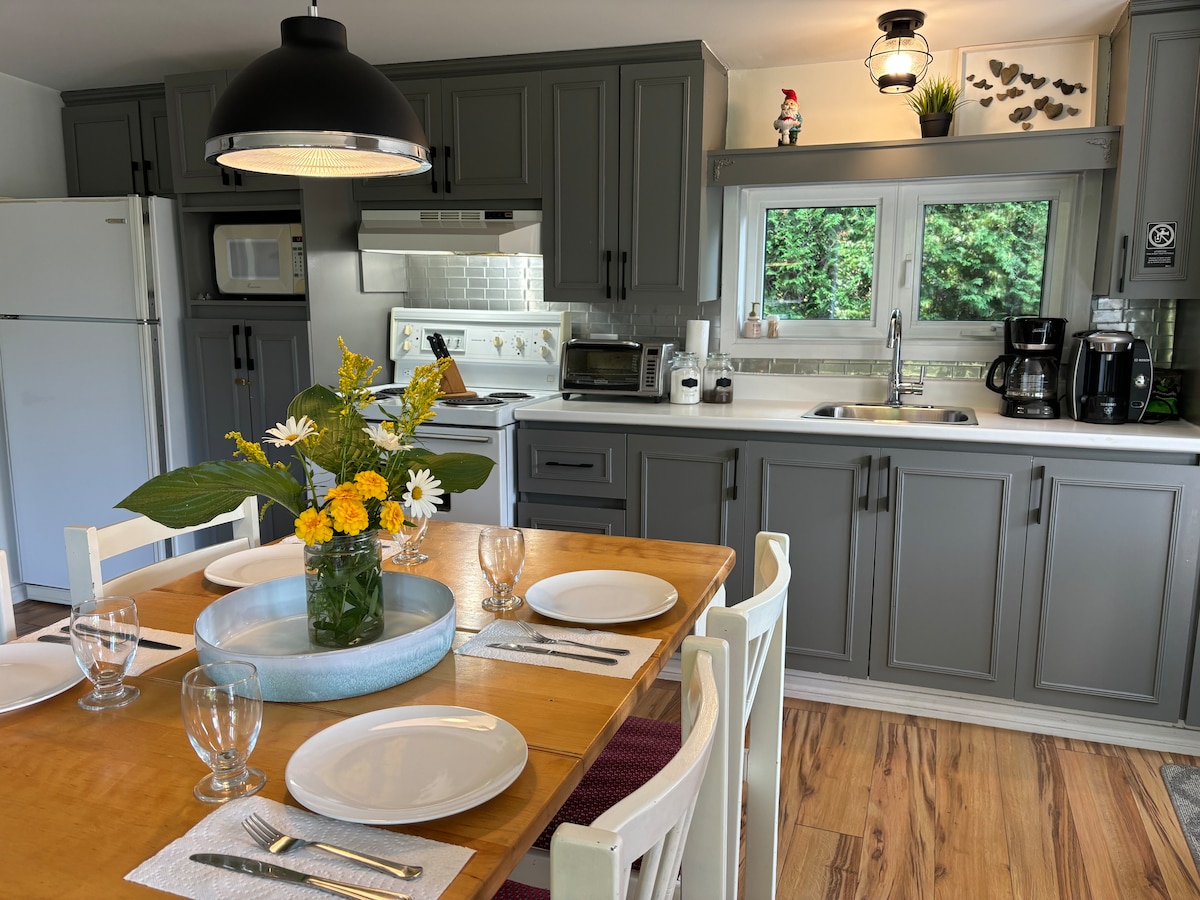 靠近聖讓湖 (Lac Saint-Jean) 的美麗鄉村小屋。與家人一起放鬆的完美之地!可舒適容納 4 人,使用客廳的沙發床最多可容納 5 人。兩間臥室均為開放式。牆壁是隔板,門是窗簾。您可以使用私人土地和壁掛式熱泵,享受舒適!對於海灘愛好者,步行 8 分鐘即可抵達 Colonie Notre-Dame 營地。海灘很漂亮!!