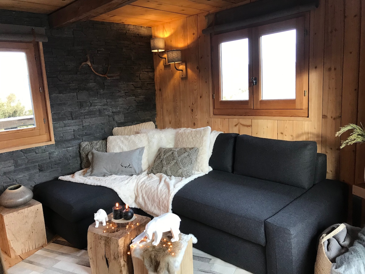 在Aravis山脈的中心,小屋「la cabane d'Ernestine」是兩個人的溫馨之地,位於森林邊緣,可欣賞壯麗的山谷景觀。 木質效果電爐保證溫馨的氛圍,所有壁爐的魅力,沒有限制和安全! 正宗的薩沃伊風格裝飾、安靜、徒步旅行和滑雪(拉克呂薩、勒格朗博南):無論夏季或冬季,都是您充電的理想住宿。