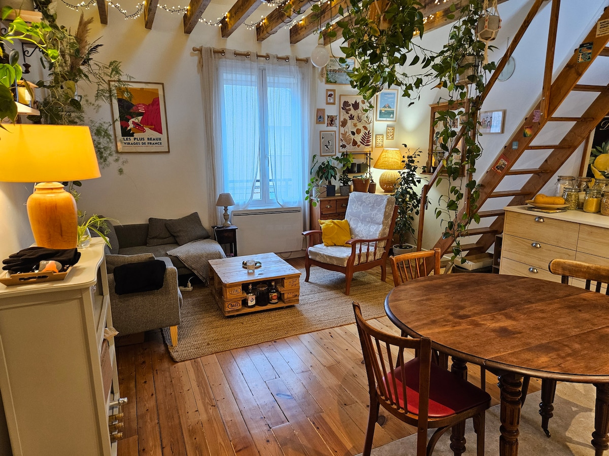 此房源具有獨特的風格,30 平方公尺的複式公寓,設備非常齊全(冰箱、微波爐、洗衣機、咖啡機、吹風機、熨斗和熨衣板等)3 張床(140 公分雙人床 + 1 張沙發床)非常適合有 1 名孩子(6 歲以上)的夫婦或 3 位朋友。 地理位置非常好,交通便利(靠近 Ourcq 運河,位於 5 號線的 2 個地鐵站之間,61 號巴士,Velib 站),靠近商店(Franprix、餐廳、麵包店等)