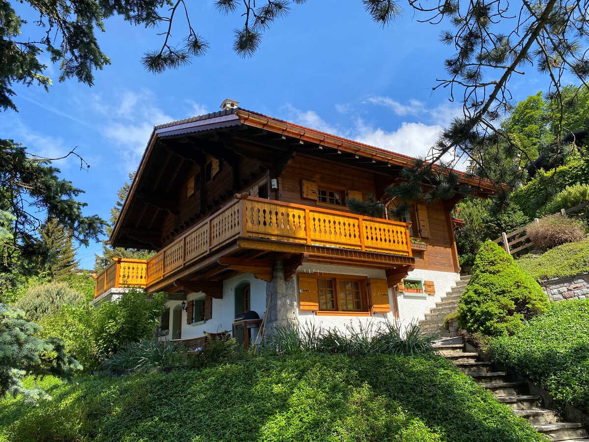 Delightful individual chalet, very peaceful, with beautiful garden, terraces and balconies South facing. It offers breathtaking views of the Swiss Alps. Set in a traditional spirit with the help of local craftsmen, this chalet - upgraded over the years - is a real piece of art, unique of its kind. With its many integrated wooden carved storages, its unique furniture, it combines modern comfort with the charm of yesteryear, it will seduce both families and lovers of authenticity and calm.
