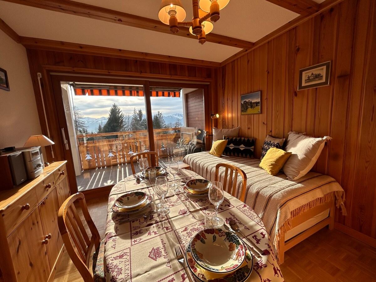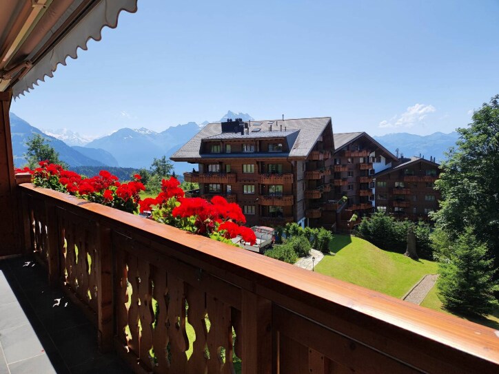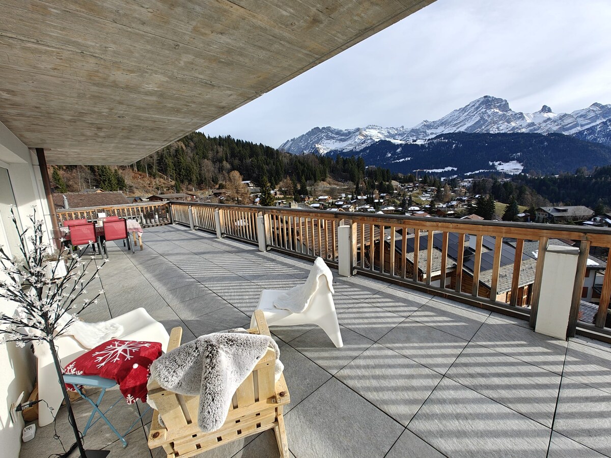 Charming and bright apartment with stunning views. Located in the heart of Villars in a central and peaceful location. It offers: - Impressive mountain views and a large terrace to appreciate them. - Bright and spacious. - Centrally located yet peaceful, with easy and quick access to restaurants, bars, and supermarkets. Situated right between the two Villars ski lifts, an 8-minute walk to the telecabine and to the train station. Bus stop 3 minutes away. - Private and covered parking space.