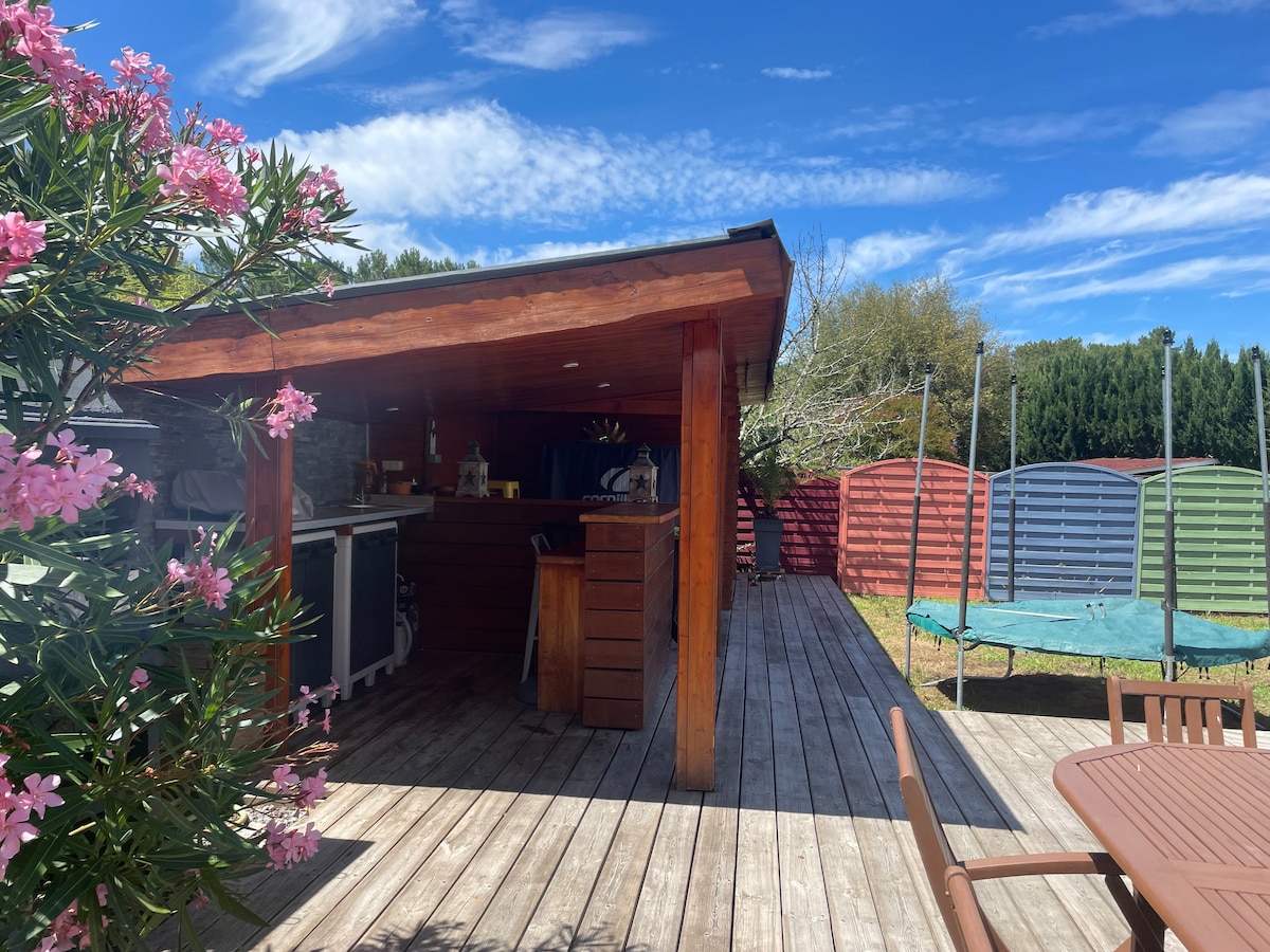 Le Teich au calme maison de plain pied refaite à neuf de 100m² avec parking. Un séjour-cuisine ouverte équipée, 3 chambres, 1 sdb , 1 wc séparé. Terrasse 100m²avec cuisine extérieure abritée avec plancha, barbecue à charbon, bar. Trampoline, baby-foot, table de ping-pong, jeux de plage et de société. SPA PRIVATIF TOUTE L’ANNÉE, EAU CHANGÉE POUR CHAQUE LOCATION. Piste cyclable devant la maison (Cap Ferret Arcachon), 5 vélos disponibles avec siège bébé. WIFI fibre netflix, prime, disney + gratuit.