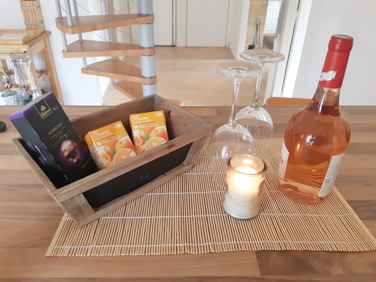 Appartement très lumineux au 3ème et dernier étage, sans ascenseur, avec un salon/salle à manger, une cuisine moderne équipée, une grande chambre (15 m2), une salle de bain et une mezzanine avec son coin lavabo (9 m2 - hauteur 1,75 m). Le centre ville historique est accessible à pied en 7 minutes. Devant la résidence se trouvent une boulangerie et une pharmacie. Le parking collectif fermé est très utile. Vous aurez accès au wifi par fibre, à la TV par la box, à la musique etc..