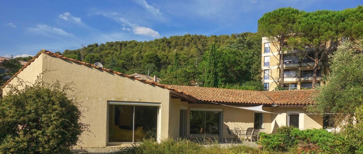 Sunny Provençal villa, modern 70s design, family space, walking distance of Aix center/Cours Mirabeau, internet/WiFi, Olympic municipal pool & shaded park nearby. Full kitchen w/dishwasher, patio dining area & spacious garden. Central AC & heating, 3 large bedrooms (2 private, one pass-through bedroom), 3 full baths (2 showers, 1 shower/bathtub, 3 toilets) washer/dryer, baby bed, desk/study, free private parking for up to 3 cars, quiet and relaxing holiday away near all