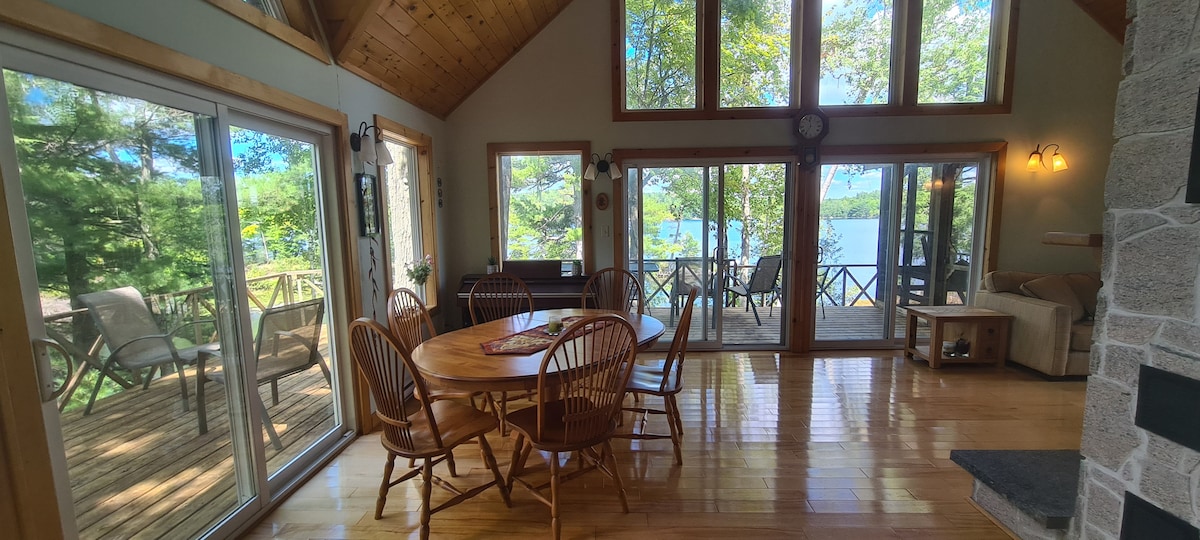 歡迎來到The Riverside Retreat ,這是一間位於千島附近的加納諾克河(Gananoque River)的寧靜四季小屋。 享受私人沙灘、遮蔭涼亭、營火設施、皮艇、獨木舟和壯麗景色。 室內有拱頂大客廳,設有設備齊全的廚房,以及3間舒適的睡房,最多可供10人入住。 非常適合家庭、釣魚旅行或安靜的度假勝地,距離加納諾克、遠足徑和全年冒險僅幾分鐘路程。也適合寵物入住! 在社交媒體上追蹤我們!