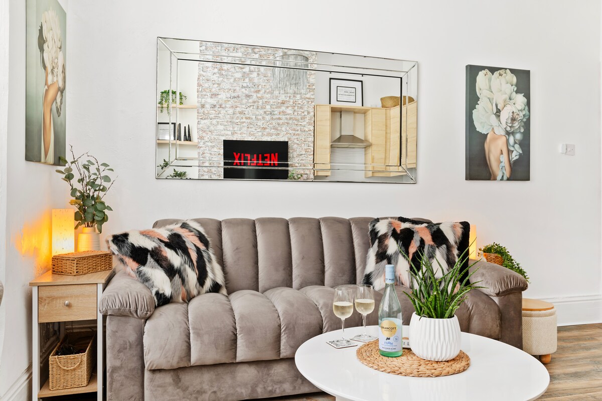 這個時尚的空間坐落在萊斯特市中心,放鬆身心。 這間寬敞的豪華公寓設備精良,最多可舒適容納4位房客。 休息室配有55英寸智慧電視,可收看Netflix、YouTube等,並提供WiFi。 有一張沙發牀,配有第二套寢具,變成一張全尺寸雙人牀。 大型豪華浴室,提供盥洗用品。 現代化的廚房配備了現代家電。