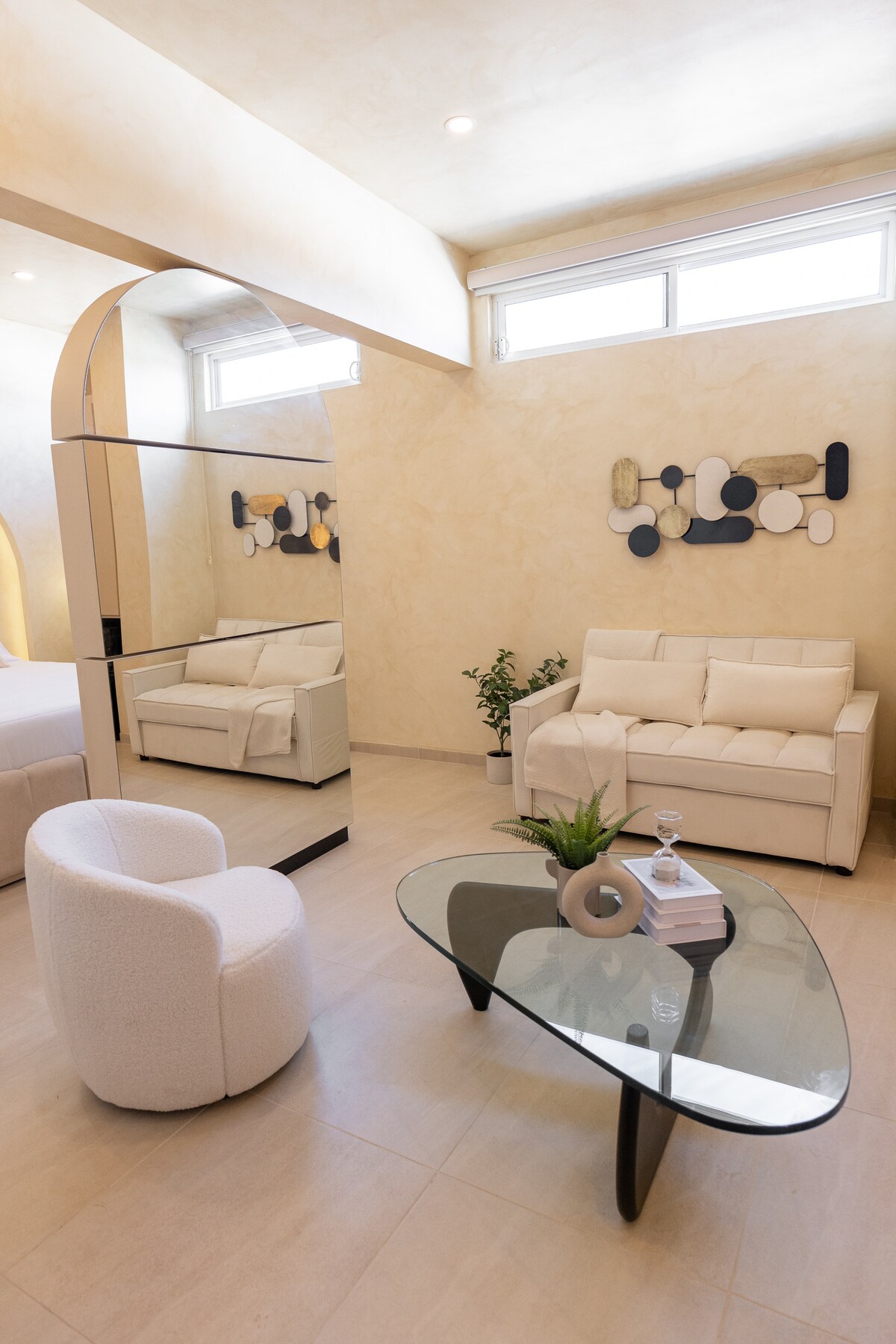 歡迎來到我們豪華舒適的單間公寓,旨在情侶提供5星級體驗。這間單間公寓配有加大雙人床、壓力和溫度完美的雨瀑淋浴間、高速Wi-Fi、免費咖啡服務、兒童沙發床、高級裝潢和旋轉電視,比任何酒店房間或套房都好。這是一個新單位,於2023年10月完成,一切都全新。住宿包括私人停車位。位於 Casas Sanblu。