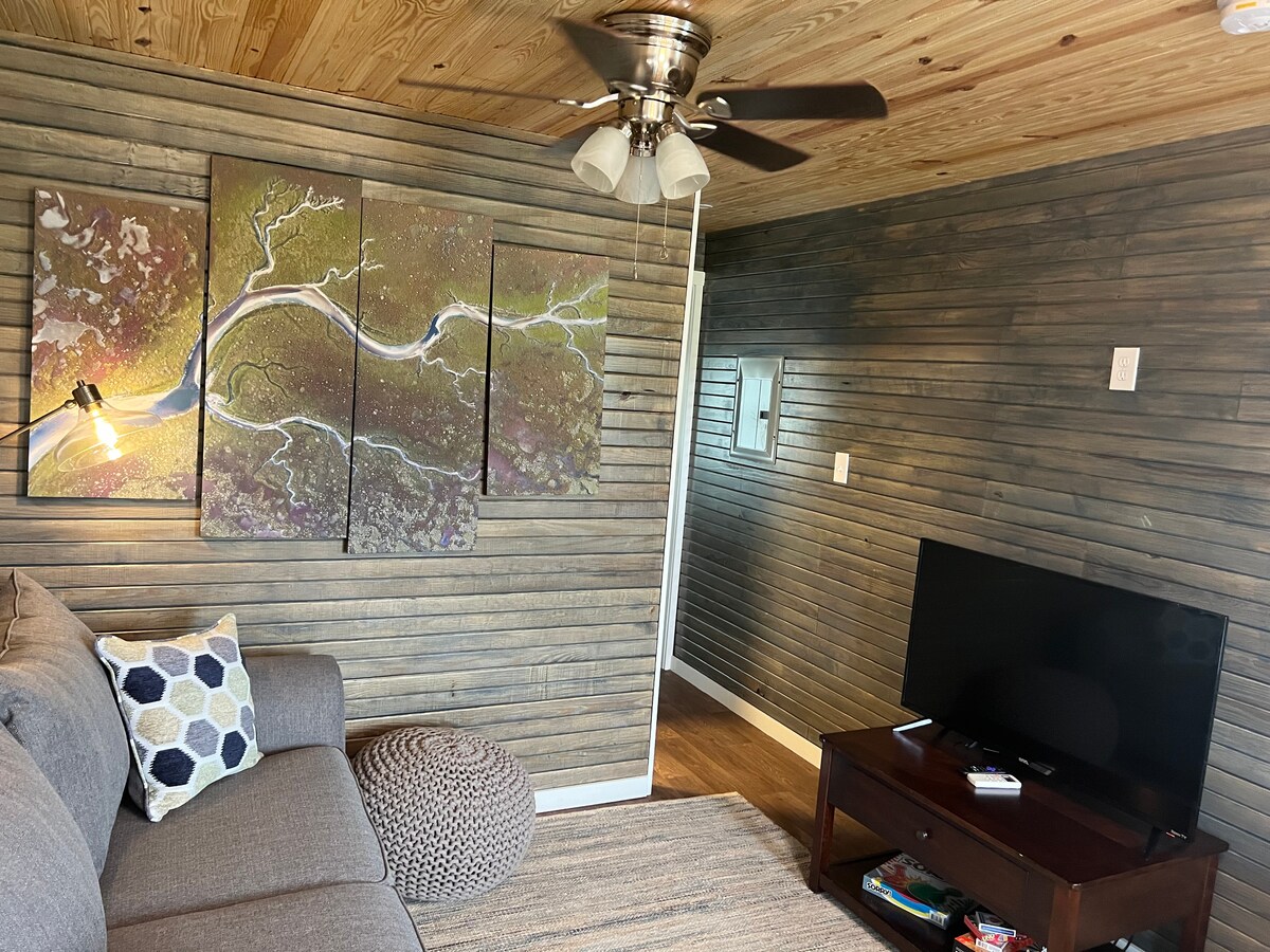 可攜帶狗入住,配有可調式雙人床!!感謝您考慮這個寧靜的地方,這是情侶或小家庭放鬆的完美地方。使用我們的Roku智慧電視,您可以觀看您最喜愛的電影或節目。在即時熱水淋浴間放鬆身心,然後坐下享受私人2人熱水浴缸。在門廊上喝杯咖啡或熱巧克力。 晚上,您可以在火坑旁烤肉,欣賞所有的星星。私人狗圍欄。