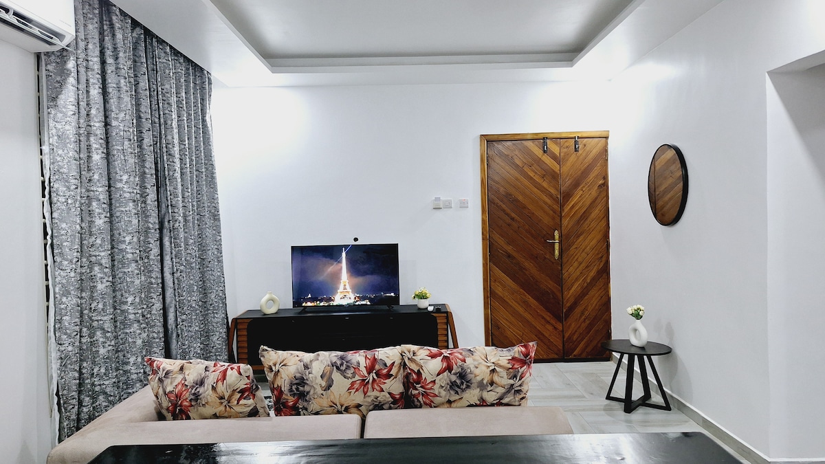設備齊全且維護良好的度假小屋,位於Mbezi海灘區域的安全私人大院,距離Bagamoyo路僅1.2公里。1間臥室( 1張雙人床+1張沙發床)、1間室內浴室和一間預留的室外訪客浴室。50英寸電視,配有智慧盒、洗衣機、熱水淋浴、免費WiFi、空調、設備齊全且功能齊全的廚房。 非常適合情侶和最多一名兒童入住。停車位,24小時閉路電視系統和現場保安。緊急發電機