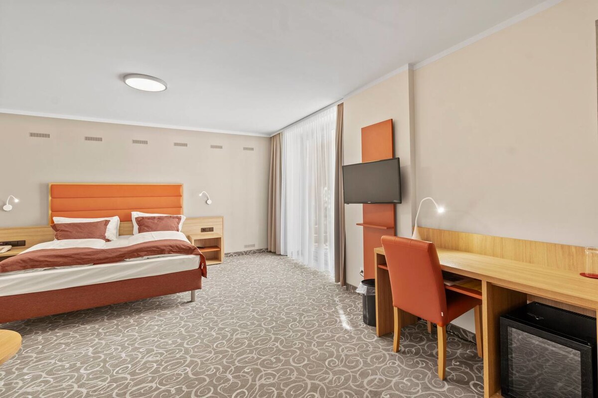 豪華客房配有獨立浴室+廁所,配有加大雙人牀、水壺、咖啡機、吹風機和配備串流服務的智慧電視。 在公共區域,您可以找到2間房客的廁所、2個陽臺和一臺飲料自動售貨機。 我們的家庭經營的莫扎特膳宿公寓( Pension Pension Mozart )與100多年的傳統相關聯。 它於2021年全面翻修,提供全天候輕鬆的無接觸式入住服務。