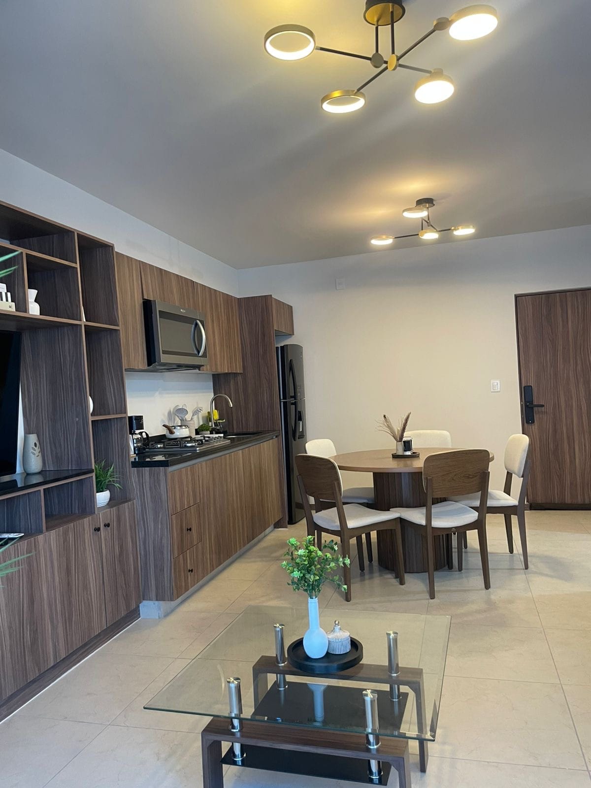 Disfruta de este alojamiento céntrico.Disfruta este moderno departamento de 2 habitaciones y 2 baños, perfecto para viajes de trabajo o descanso. Ubicado sobre una plaza comercial, tendrás restaurantes, cafés y tiendas al alcance. El espacio cuenta con cocina totalmente equipada, 2 televisores Smart TV, decoración cálida y estilo contemporáneo. Además, disfruta de amenidades exclusivas: alberca, gimnasio y seguridad 24/7. Ideal para quienes buscan comodidad, ubicación y diseño en Torreón.