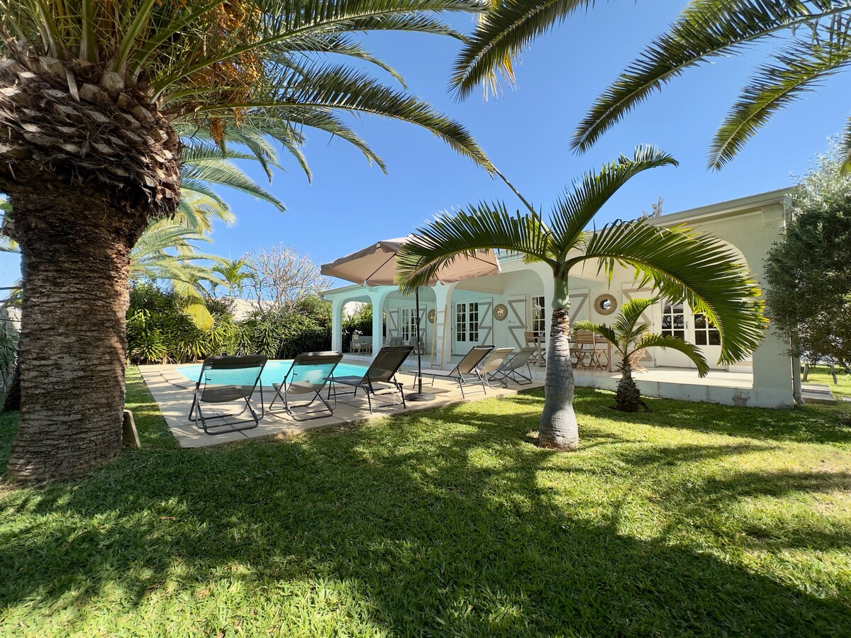 我的平房獨立且設備齊全,坐落在一個大型熱帶花園中,我們將與我的狗Nina和Gaston分享,靠近隱士湖。露臺和 3 塊滑動面板可讓您隨心所欲地調整空間。從海灘回來時,您會特別喜歡它的戶外淋浴。在這個街區,您可以步行前往餐廳、商店或 l'ermitage 市場。非常適合 1 至 2 人入住。