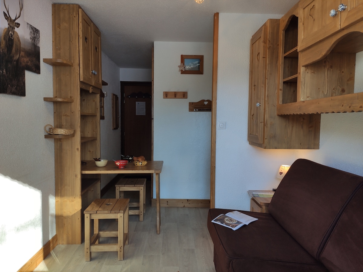 Skiez dans une belle station, Appartement au coeur de la station avec nombreuses activités et commerces accès au pistes à 50 m. 30m2 4 couchages casier à ski parking sécurisé fermé. De quoi passer de très bonnes vacances. Pour le Ménage il est à faire (voir explicatif dans les échanges avec les voyageurs)ou si vous ne le faites pas il vous sera facturé en plus 55 euros sur place. Caution demandée à l'arrivée.. Wifi à payer sur place 12 €/sem pour 1 appareil ou 29€ /sem pour 4 appareils