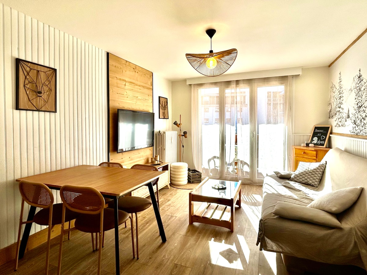 迷人的公寓完全翻修: -位置:度假村中心,靠近滑雪纜車和所有設施( superette、滑雪學校、旅遊辦公室... ) -可容納4人。 -表面區域: 20平方公尺。 -設備:全新優質家具,配有WiFi連線。 -景觀:有遮蔽的陽臺,可欣賞度假村的景觀。 -停車位:免費和有蓋私人停車位+住宅前面的免費接駁巴士。