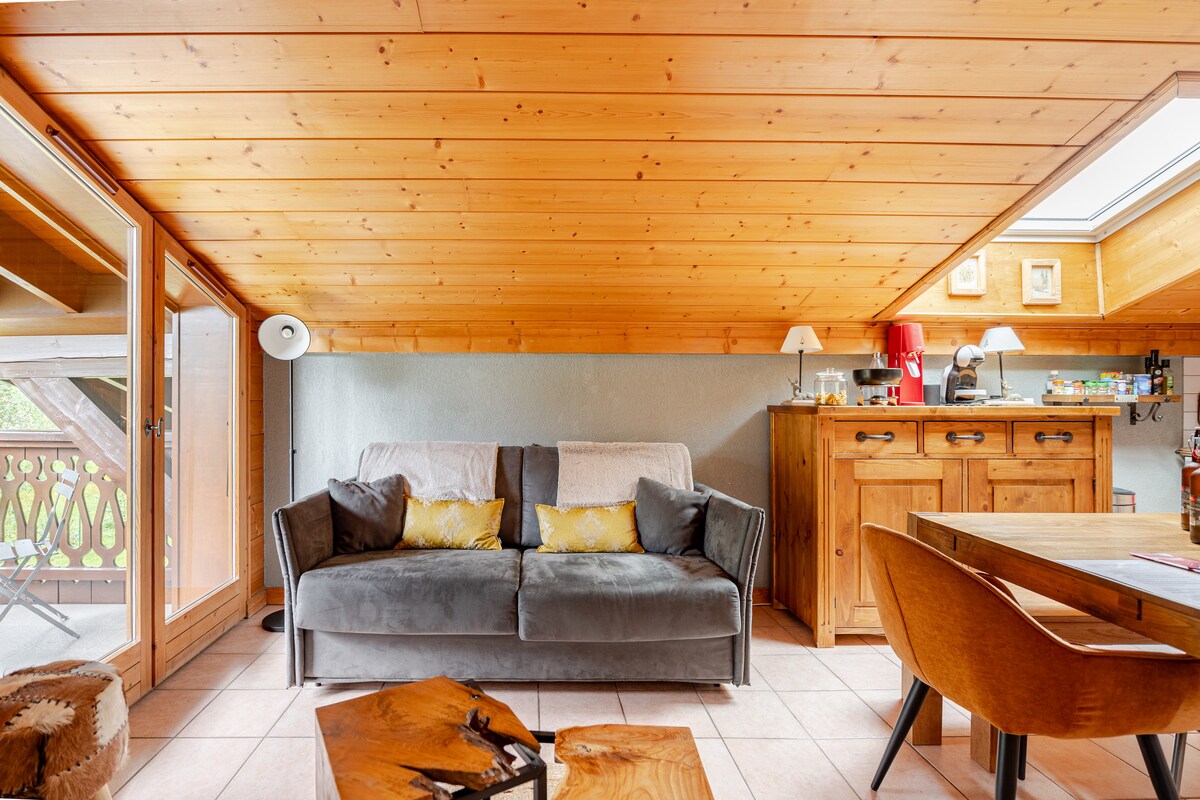 44 平方公尺的公寓,位於一棟非常安靜的小木屋式建築的 2 樓和頂樓(無電梯): - 2 間雙人臥室, - 1 間配有 2 張單人雙層床的臥室, - 客廳配有雙人沙發床。 - 2 間浴室(1 間配有浴缸,1 間配有淋浴間) - 2 個陽台,可俯瞰平原和白朗峰山脈。 - WiFi、電視、咖啡機、烤箱、洗衣機、洗碗機、微波爐等 -車庫+停車位 - 小屋附近有超市和加油站,步行 2 分鐘即可到達巴士站。