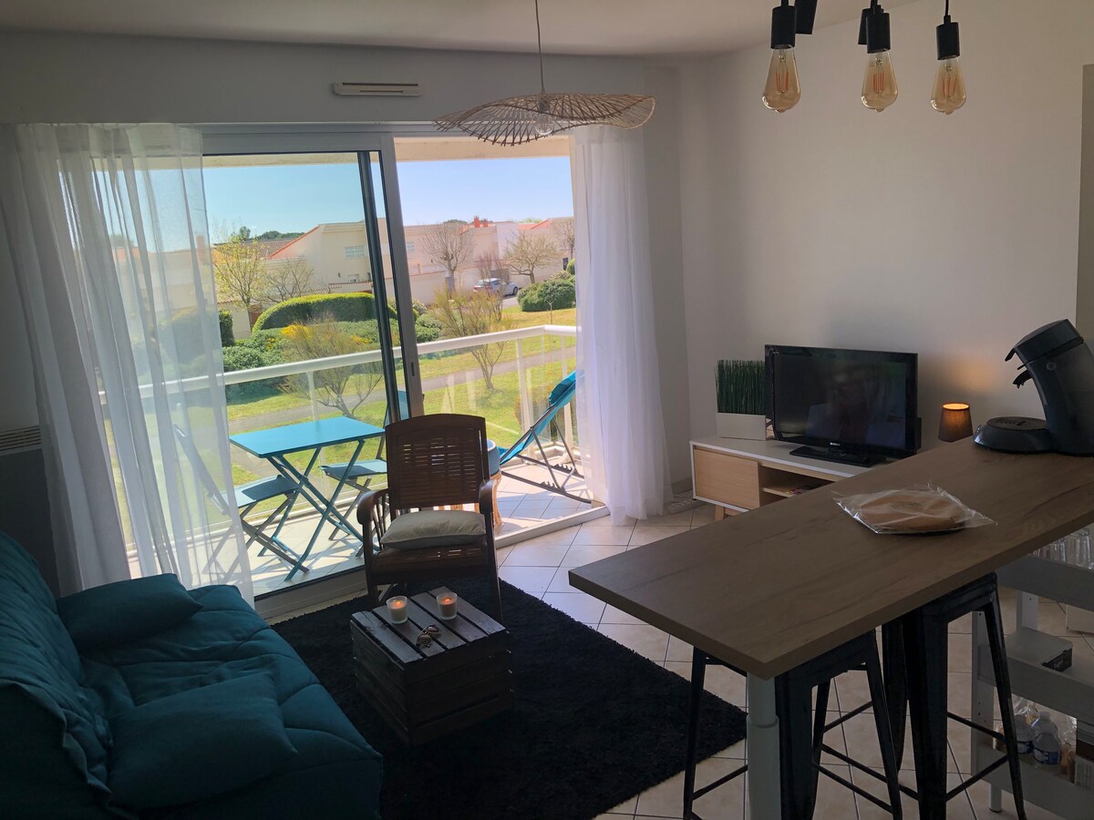 這間超明亮的40平方米T2的高品質服務(工作坊天花板、臥室和客廳的大窗戶,距離Les Minimes海灘和碼頭100米。 附近的所有商店。 10平方平方公尺的露臺不容忽視 設備精良的廚房,配有烤箱、微波爐、洗碗機、冰箱、雀巢咖啡機、水壺、烤麵包機。 淋浴間和水槽。 臥室配有超級舒適的牀,客廳配有舒適的沙發牀。 可供1至4人入住。