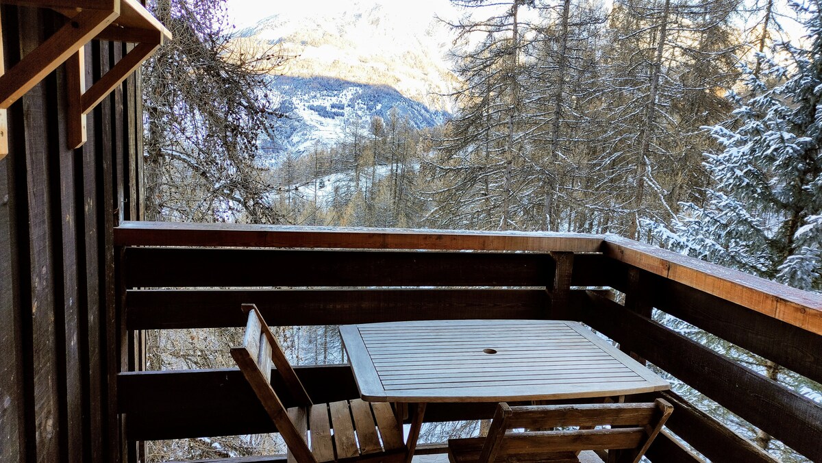 這間漂亮的單間公寓位於湖泊和山脈之間的一個安靜的住宅區,於 2023 年全面翻新,位於 4 樓和頂樓,可欣賞落葉松山頂的美景。 距離滑雪場 5 分鐘(免費接駁車),距離塞爾蓬松湖 (Lac de Serre-Ponçon) 20 分鐘。 奧爾 (Orres) 住宿品質標章:3 檜木。