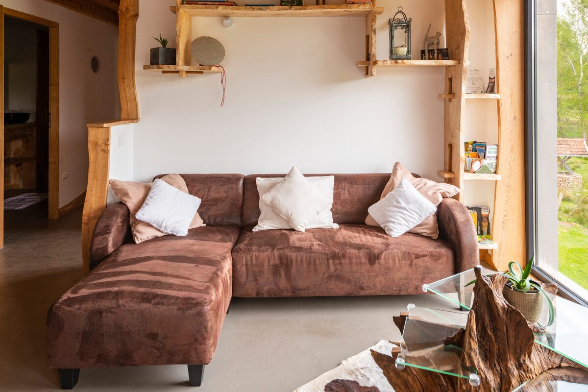 糖屋擁有幸福感和甜蜜的小繭,完全採用高貴的材料將木材、石頭和金屬混合在一起。 按摩浴缸、芬蘭桑拿房和私人池塘景觀的住宅網為我們的度假木屋增添了獨特的個性 您會喜歡小木屋的壁爐,這是一個真正迷人的資產,營造出溫馨而真實的氛圍,在戶外度過一天後是完美的選擇。