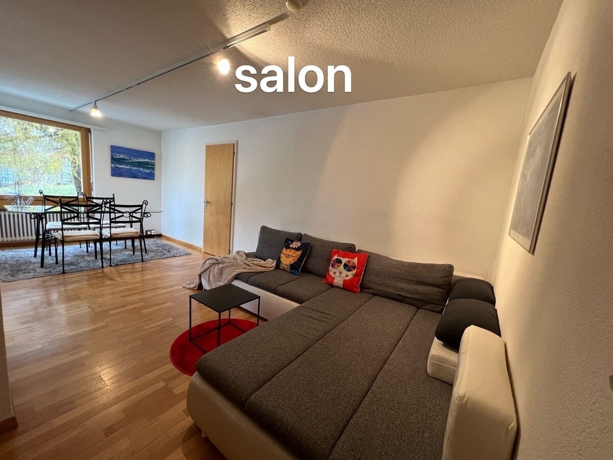 公寓位於一棟舊房子內僅有其他 3 間住宅。您可以免費停車,並可預訂芬蘭浴和桑拿(請參閱條件) 它經過翻新,並保留了典型的瑞士特色。理想位置:距離游泳池 150 公尺,距離電視 100 公尺,距離 Migros 200 公尺,距離巴士站 50 公尺。您可以自行抵達,但我們很樂意歡迎您,並為您提供一些關於該地區的說明和建議。