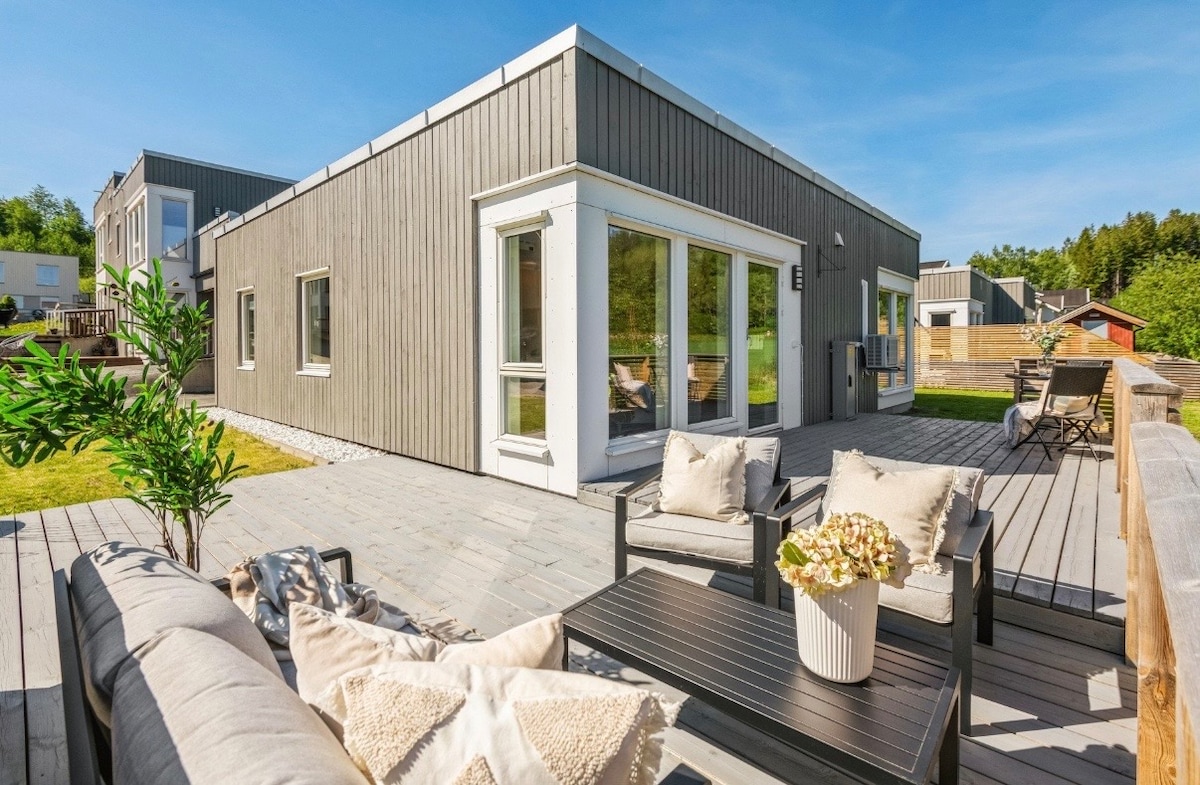 入住這間時尚的小木屋,與全家人一起放鬆身心。 欣賞特隆赫姆的景色(使用按摩浴缸每次住宿收費2000挪威克朗)。 設備精良的廚房,配有洗碗機。7張牀分為3間臥室,附樓可能有2張額外的牀(每晚500nok )。 一間浴室+獨立馬桶。 從E6前往很方便,距離Værnes僅25分鐘路程,距離Frosta很近。 在附近散步很棒,蹦牀上有蹦牀。 200挪威克朗的共同費用涵蓋WiFi等費用,並始終包含在價格中。