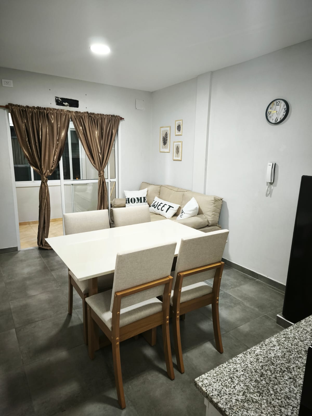 Disfrutá de una estadía cómoda y relajante en este departamento moderno, luminoso y cuidadosamente decorado. Ubicado en una zona tranquila, a metros del centro, estarás cerca de comercios, puntos gastronómicos, cafeterías, plazas y medios de transporte, sin renunciar a la paz del descanso. Cuenta con un amplio living-comedor, cocina totalmente equipada, dormitorio confortable, un balcón con vista panorámica de la ciudad y cochera techada con portón eléctrico disponible a pocos metros.