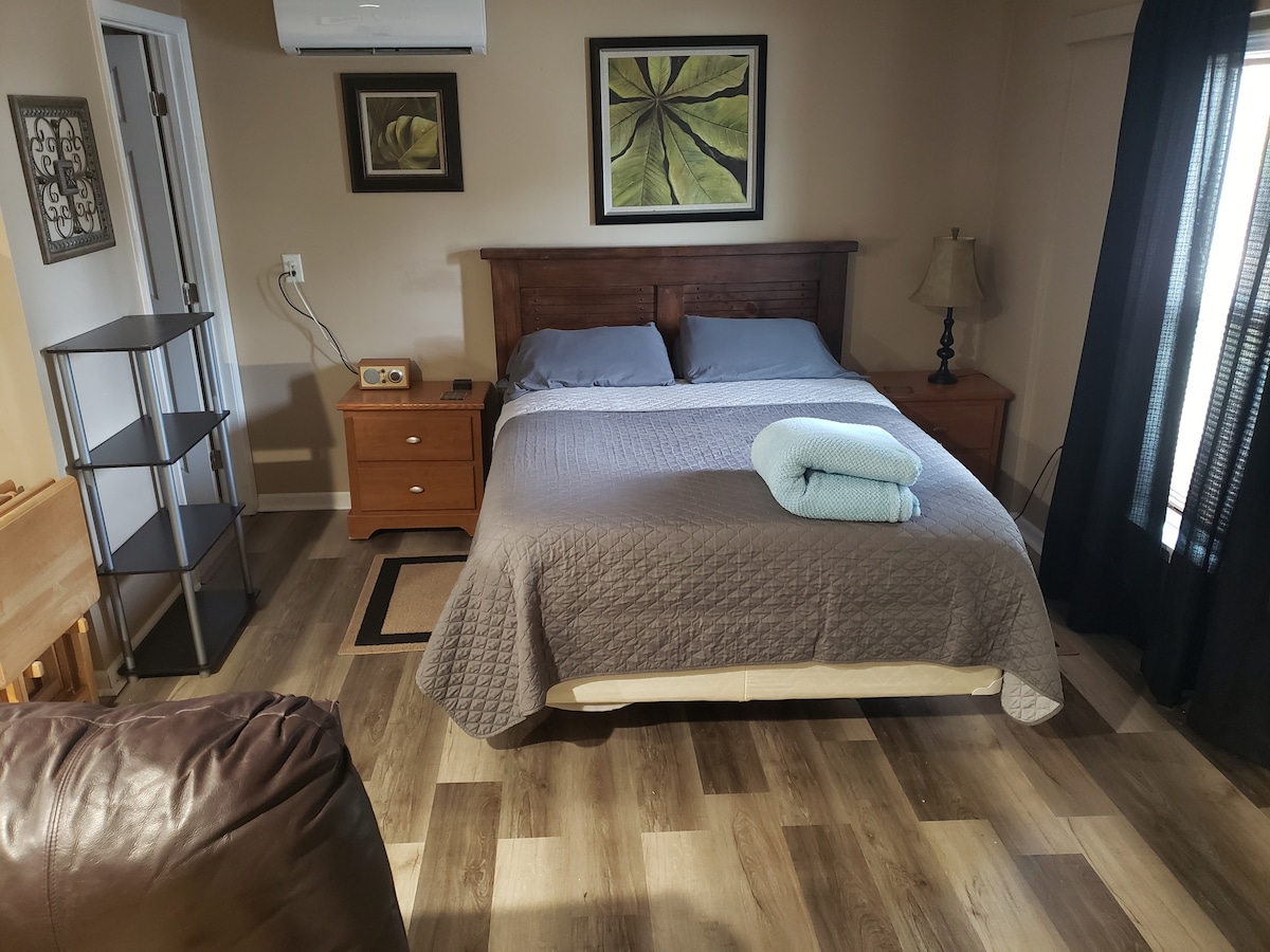 坐落在主屋後面的私人安靜花園。 路邊停車位和自己的入口。 東山安全友好的社區。 步行即可抵達麵包店和酒吧。 位於彭薩科拉市中心和機場之間。開車15分鐘即可抵達海灘。 無線網路訊號強。 帶天線的電視。 Amish「壁爐」暖氣。小廚房配有中型冰箱、水槽、微波爐、烤麵包機、George Foreman烤架、可烹飪任何東西的烤盤和餐具。 露台上有烤架。海灘裝備。