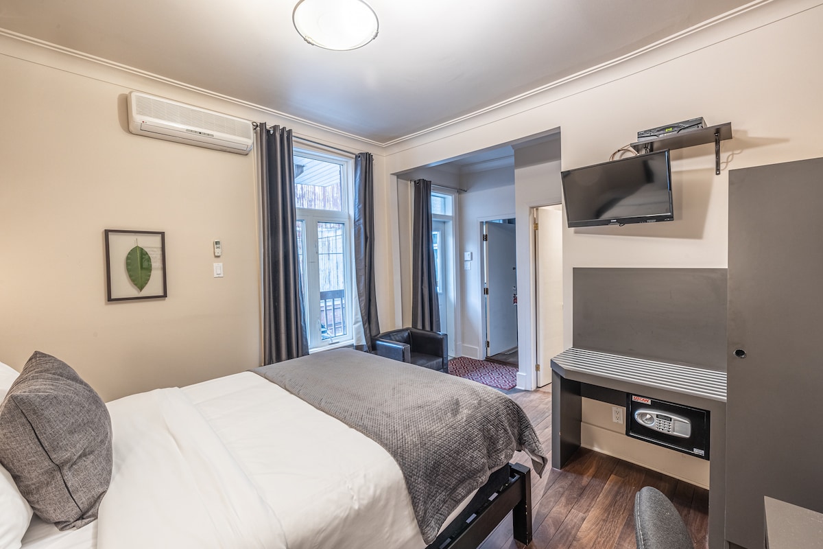 我們的10間Loft全新翻修、品味高雅,配備您所需的一切,配有一張標準雙人牀,配有小廚房和檯面空間,無論您是商務或休閒旅行,都能提供難忘的體驗。 位於魁北克市中心,快來享受它來度假吧! 距離魁北克市最好的街道之一卡地亞街( Rue Cartier )僅幾步之遙!