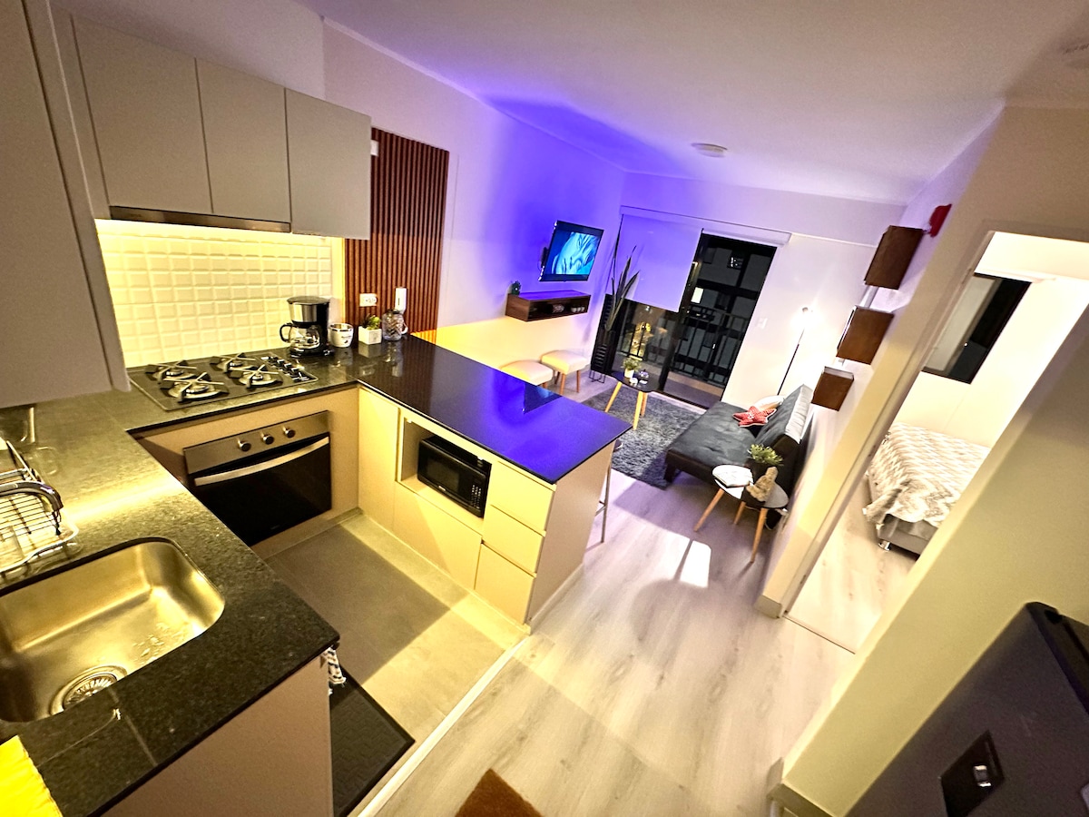 **新的複式公寓,靠近聖伊西德羅(San Isidro),非常適合旅遊或商務** 設備100%齊全,擁有美麗的公共區域,如無邊際泳池、健身房和屋頂休息區,可欣賞金融中心的壯麗景色。靠近Mariscal Castilla公園。位於林斯(Lince)住宅區的中心位置,非常適合前往其他區域,如米拉弗洛雷斯(Miraflores)、巴蘭科(Barranco)、利馬中心(Lima Centro)。非常靠近商場、娛樂場所和餐廳,您可以在這裡享受我們的美食文化。