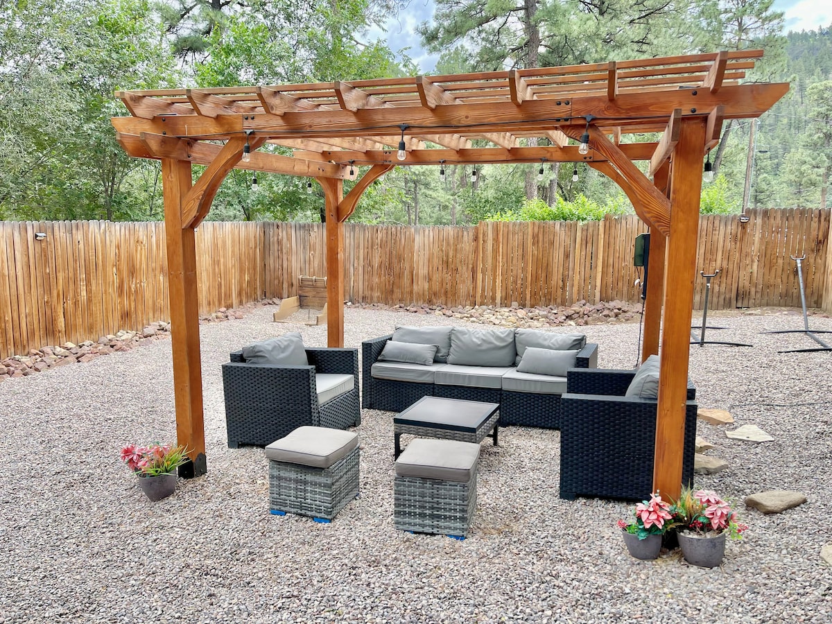 Escape to our modern, 4BR cabin-inspired retreat in Ruidoso! Perfect for families & groups, this home features a hot tub, shuffleboard & arcade, and a fun kids' bunk room. The open-concept living space and fully equipped kitchen are ideal for connection. Enjoy the large private backyard with and kids play area. Just minutes from Ski Apache and local parks. Comfortably accommodates your group for a mountain getaway.