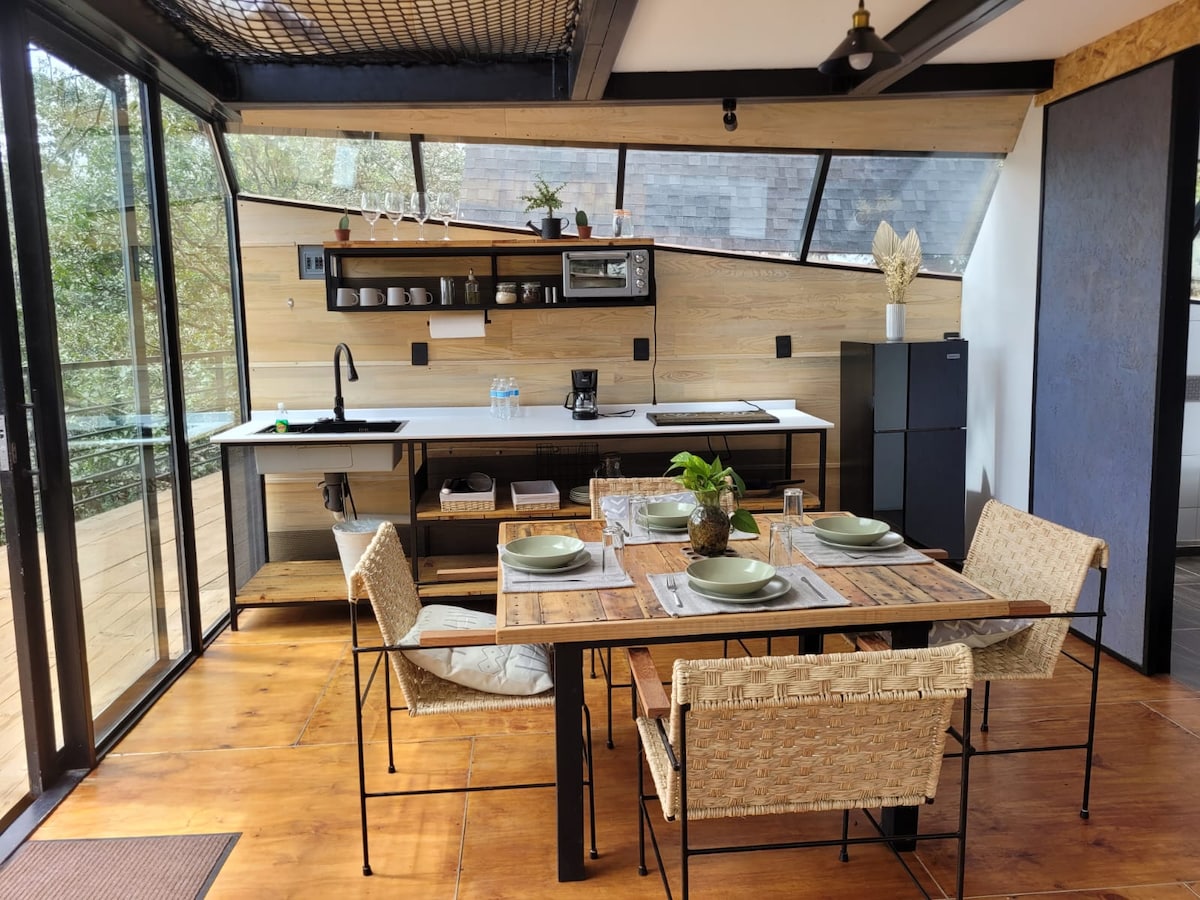 快來認識奇科國家公園( Chico National Park )最美麗的精品小木屋,這是鐵、木材和烘焙泥土融化的現代建築,在豐富的oyameles、ocotes和野生動物的森林中。 一個充滿寧靜與寧靜的地方,可以放鬆您的感官,晚上坐在壁爐的火中,喝幾杯葡萄酒,讓您度過難忘的浪漫夜晚,或在早晨在我們令人驚嘆的觀景點一起欣賞日出,將使您的參觀理想地點