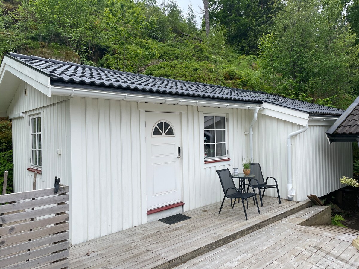 這間客用住房擁有獨特的位置,有自己的沐浴路徑( 200公尺) ,通往Finnsjön ,那裡還有一艘劃船。 有漂亮的遊泳、運動步道、照明小徑、戶外健身房、自行車道和徒步道,非常適合戶外愛好者! 開車前往哥德堡市中心僅需15分鐘。 您住在一間36平方米的新建房屋,可容納2-3人,並有自己的私隱受保護的家具露台。 包括咖啡、茶和麥片/麥片。 在旺季, 5月至9月只接受最少2人的預訂。