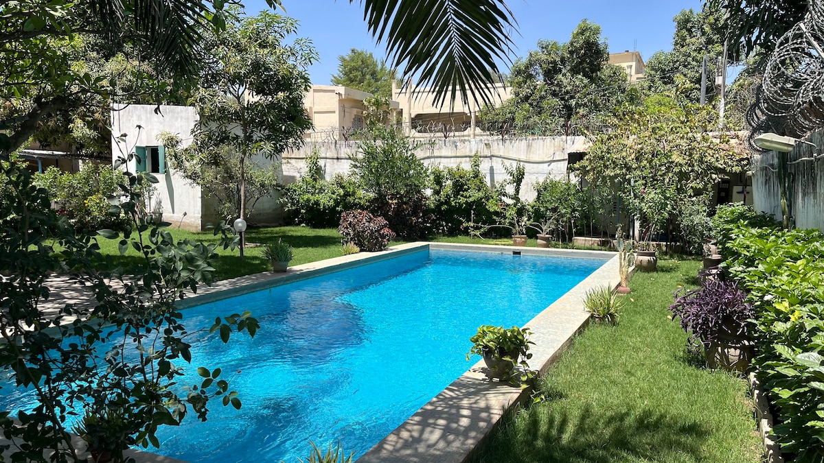 這間寧靜的旅居為全家人提供安靜的住宿體驗。 太陽能燈板,是補償不時停電的替代方案。 當季可直接摘食的水果:芒果、檸檬、肉桃、木瓜、棗子、香蕉、肥皂杏仁和薄荷! 我們在窗戶下聆聽美妙的鳥鳴。 水源,帶鼓風機的鑽孔。 花園管理員和看門狗。 提供往返機場交通。