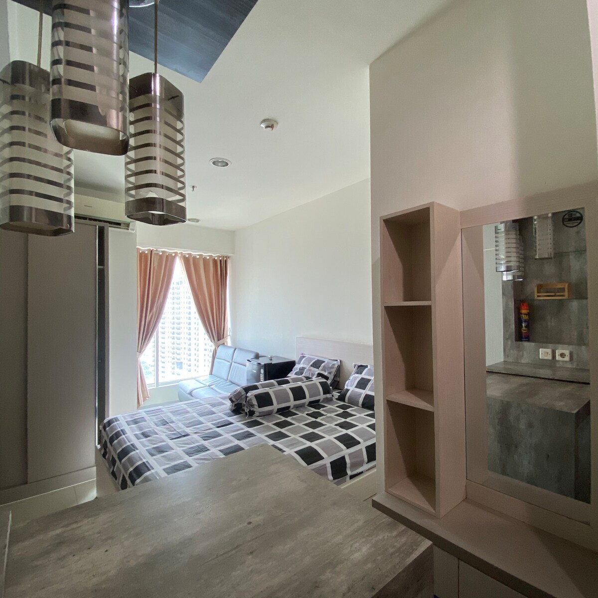 在這個獨特而適合一家大細的日式旅居創造美好回憶。 距離雅加達僅30分鐘路程的隱藏寶石,設有無限泳池。 印尼唯一。 Vasanta Innopark位於MM2100區域,非常適合商務和家庭入住。 泳池和健身房位於5樓 備註: 我們要求所有旅人在入住前透過收件箱或發送給旅居主人身份證明文件(當地)或護照(外國人)的相片。