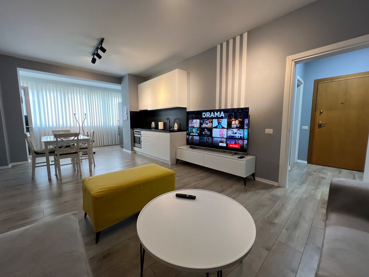 入住這間寬敞的現代化公寓,欣賞迷人的湖景。位於市中心附近,提供舒適的客廳、設備齊全的廚房、舒適的臥室和私人陽臺。公寓配備高速 WiFi、智慧電視、空調和暖氣,讓您放鬆入住。距離地拉那湖公園僅幾步之遙,靠近咖啡廳、餐廳和文化景點。非常適合在地拉那享受寧靜和便利的住宿!