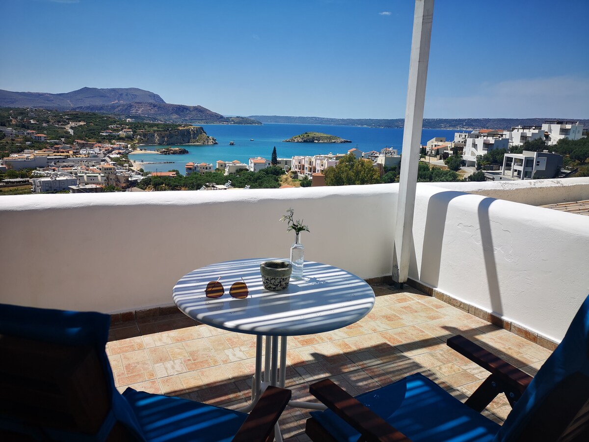 Almyrida最佳海景。 私人、舒適、時尚和舒適的套房。 新裝修、雙人床寬160公分+額外床、廚房、浴室、可欣賞海景和山景的大陽臺、吊床。 廚房配有您需要的一切:冰箱、烤箱、電爐。 步行7分鐘即可抵達令人驚嘆的Almyrida沙灘、商店和餐廳,步行幾步即可抵達最好的酒館,提供自製美食。 7olivescrete 靠近薩馬利亞峽谷、巴洛斯、埃拉福尼西海灘、哈尼亞、雷西姆諾。