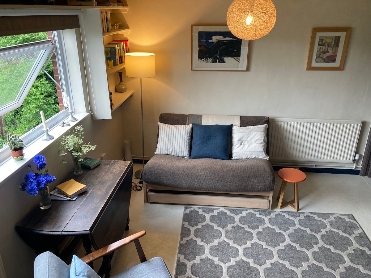 SELF-CONTAINED and BRAND NEW (Oct 2020) studio annex (attached to stunning home) with OWN SEPARATE ENTRANCE. Imagine the comfort and style of a 5* boutique hotel, with the cosiness and relaxed feel of home... FEAT: *ENHANCED CLEANING *Brand new luxury KING SIZE bed *Stunning luxury ensuite w/ walk-in dbl shower *Enormous freestanding bath *Underfloor heating *Wifi *55" TV *Complimentary Netflix *Desk *Hotel-style "kitchenette" w/ microwave; mini fridge; kettle, teas & Nespresso *Table & chairs