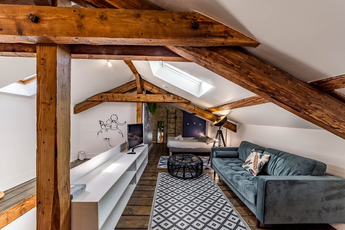 大型迷人的複式公寓,豪華地位於歷史悠久的房屋內,距離維勒弗朗什市中心僅幾步之遙,步行10分鐘即可抵達火車站。無可挑剔的舒適和清潔。可看到城牆和前烏蘇利納修道院的景觀。非常適合與親朋好友一起探索博若萊地區。獨立入口、客廳41平方公尺; 2間19平方公尺的臥室,配有頂級180公分寢具。客廳配有舒適的沙發床(140)。流利的英文和德文。