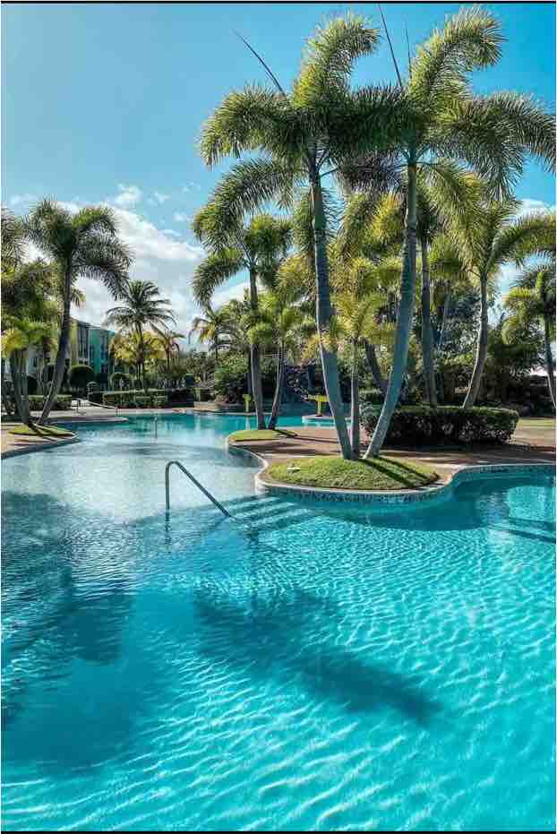 享受這間明亮的二樓公寓,兩個方向都有令人驚嘆的泳池景觀! 所有睡房均設有矯形床,讓您舒適入睡。 客廳配有65英寸家庭影院電視,主臥室和客房均配有50英寸電視,讓您放鬆身心。 冷氣讓您全程保持涼爽,Wi-Fi與Netflix確保無限娛樂。 走出陽台,配有吊床、天花板風扇和燒烤。 為大家準備的樂趣包括籃球、排球和高爾夫球裝備。